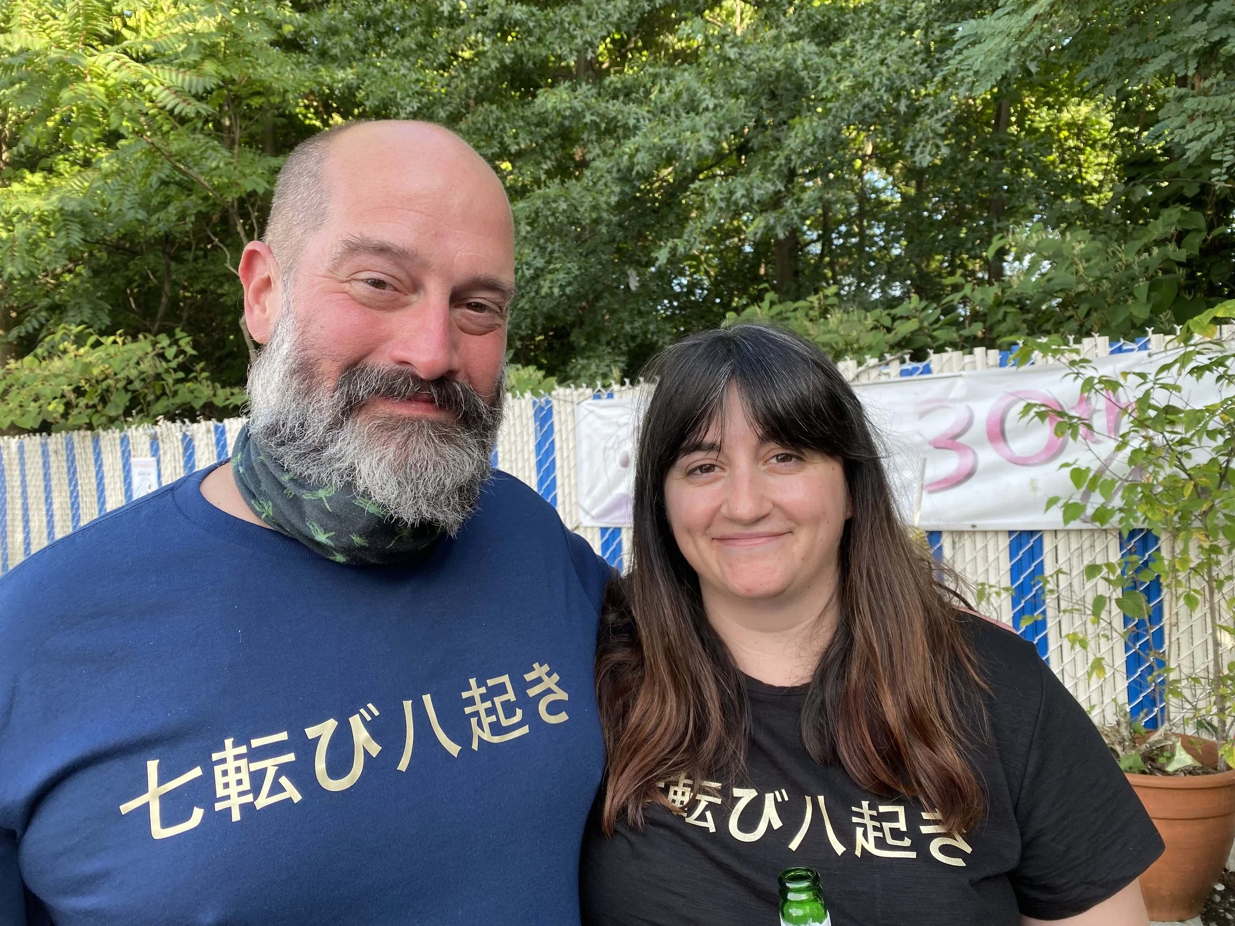 Manogue Sensei and Aldrich Sensei are sporting the original Aikido New London County T-shirt. Handmade by Aldrich Sensei with her Cricut machine.